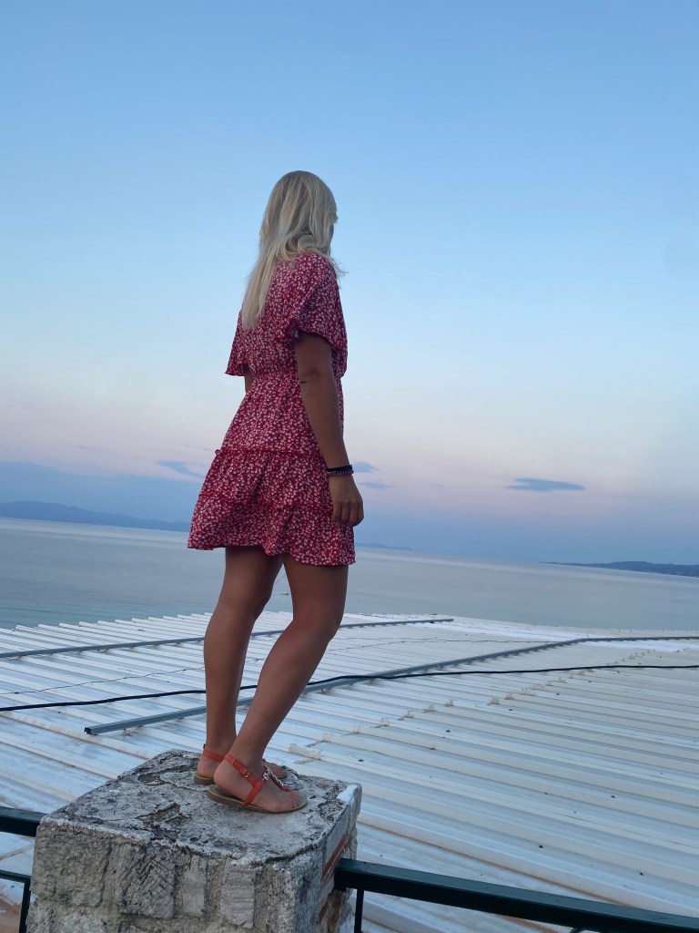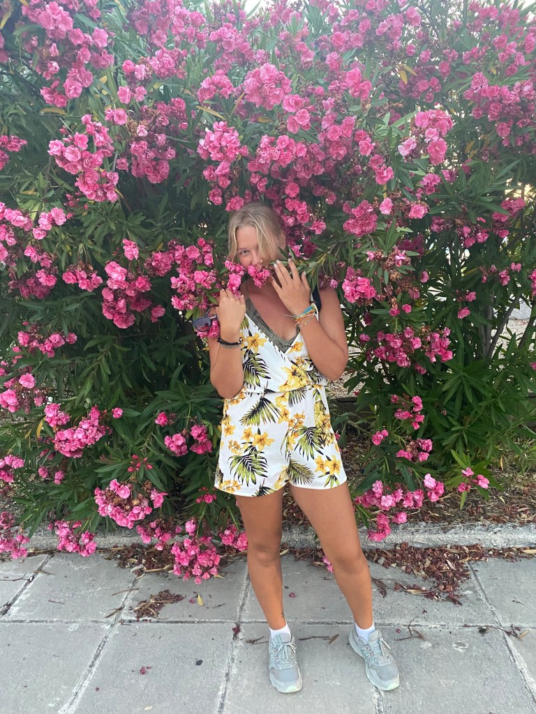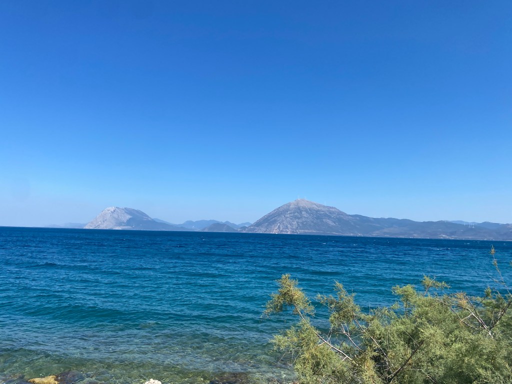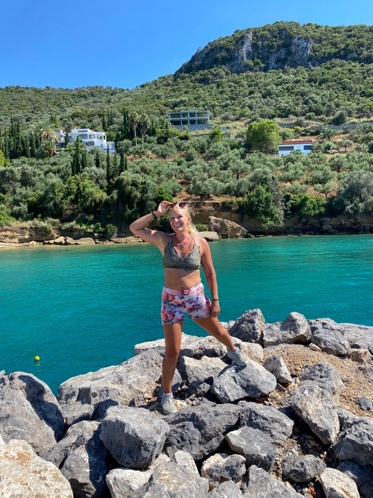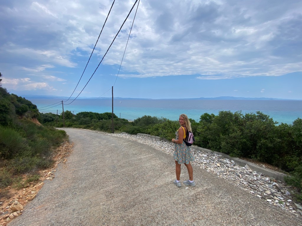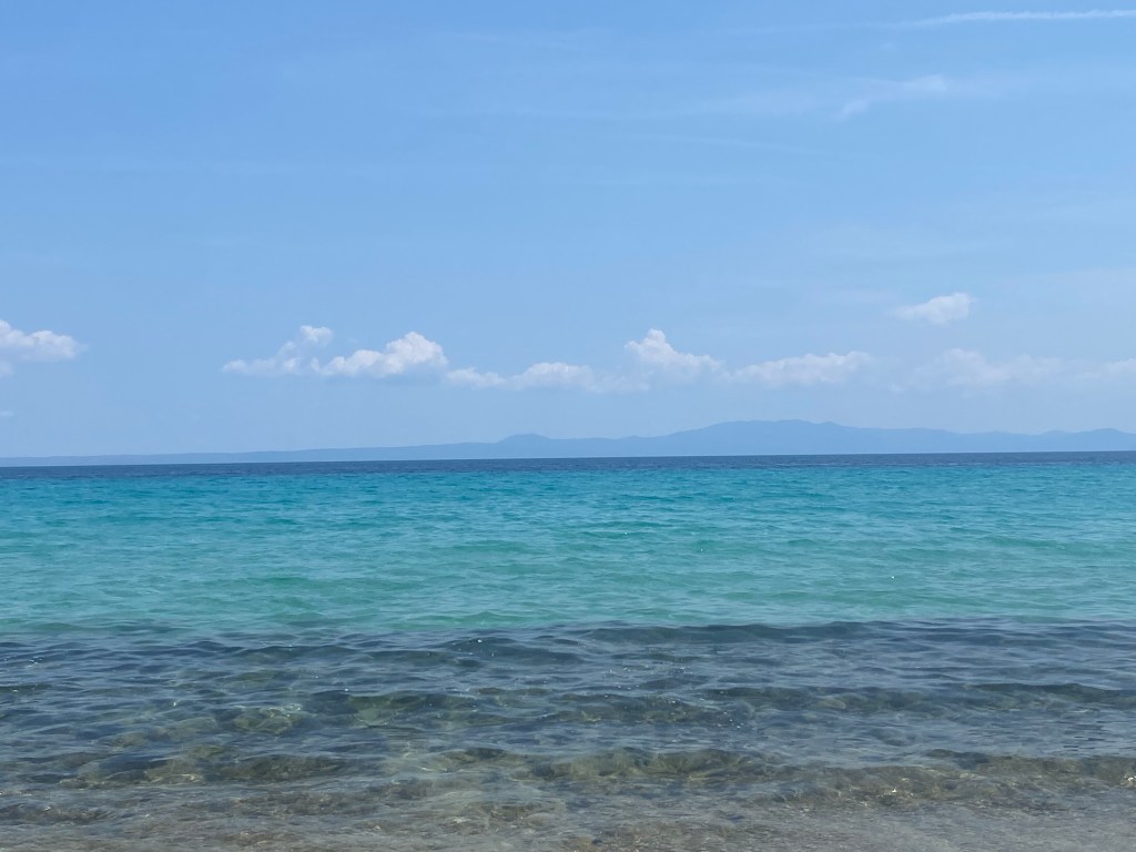 My first thought visiting this little off the beaten path island was “wow!”. I have never in my life seen color like this! It’s like the sea and skyline are literally photoshopped! The turquoise sea contrasting with the blue sky is unimaginable. You just have to see it. I couldn’t wait to get in the water, which is exactly what I did. It was a little cooler than I expected but it was so crystal clear!! I actually saw fish swim by! The white sand shows the ripples of the gentle waves underneath. The first day we got in a little late because we weren’t sure how to navigate the bus system haha. The next morning we went straight away to the beach 🏝️. It was like being in a dream. I had to slap myself to make sure I wasn’t actually asleep. Being stateside all my life I just never imagined that others live in such a gorgeous destination. I swam about 30 minutes of laps to get a quick workout. That night we walked to the little shops and ate souvlaki and salad. Yum.